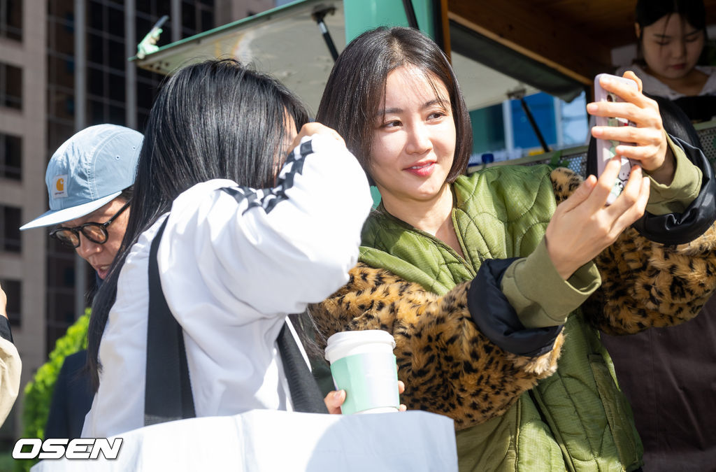 배우 황우슬혜가 팬과 사진을 찍고 있다. 2025.10.23 / soul1014@osen.co.kr