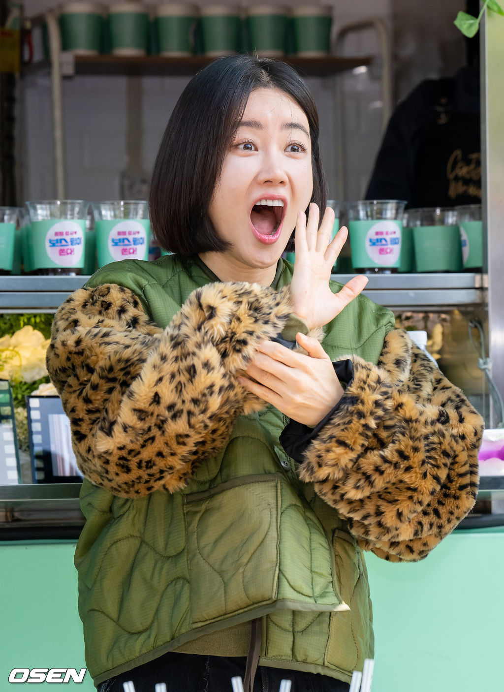 배우 황우슬혜가 팬들 보며 깜짝 놀라고 있다. 2025.10.23 / soul1014@osen.co.kr