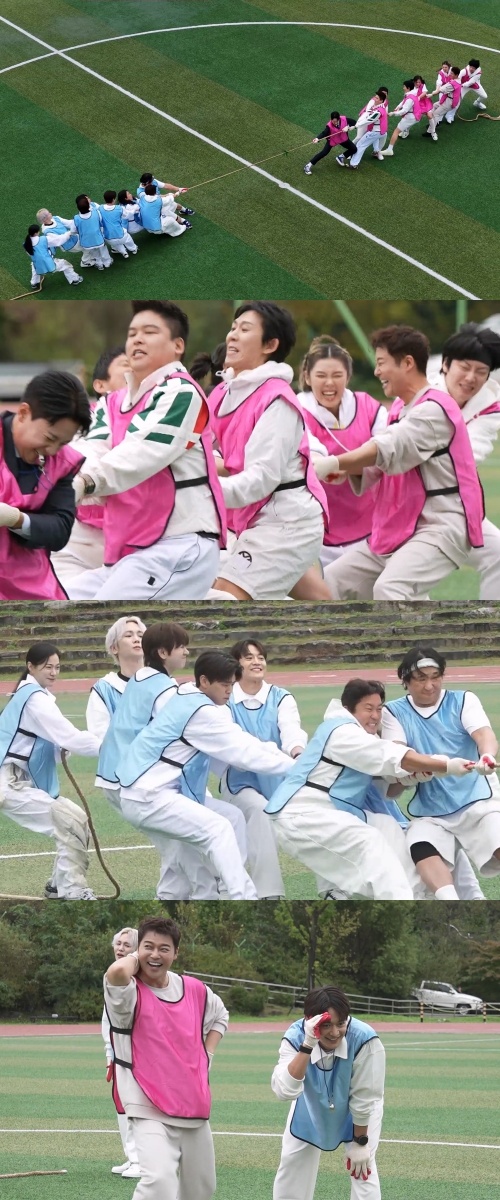 이들은 경기 시작 전부터 전력 회의를 펼치며 신경전과 기 싸움을 벌인다. “줄다리기는 몸무게 싸움”이라며 몸무게에서 비교적 열세인 ‘무 팀’은 이장우를 필두로 작전을 세운다.
