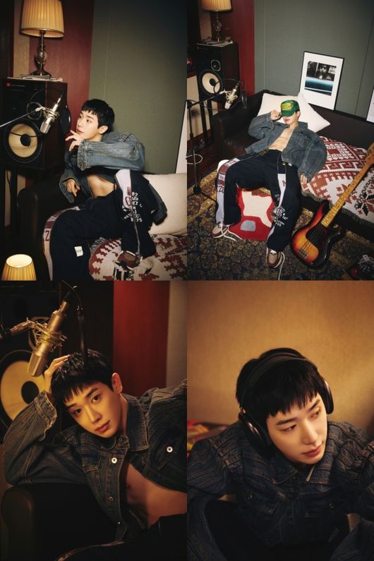 In the new photos, WONHO sits in a room filled with microphones, speakers, and guitars, exuding pure rockstar charisma. Dressed in a denim jacket draped over his bare shoulders, he shows off his famously sculpted abs while maintaining an air of understated cool. Close-up shots capture him resting his chin on his hand or posing naturally with headphones, proving once again why he’s regarded as one of K-pop’s most creative visual performers.