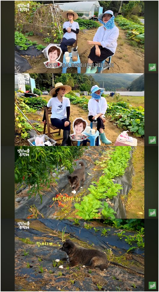 김정난은 “오늘은 쪽파 심으러 왔다. 이 집 식구들이 김장 500포기를 한다고 얘기했잖아? 나도 껴서 김치 얻어먹으려고. 공짜는 없으니까, 나도 쪽파 좀 심으려고”라며 해맑게 웃었다.