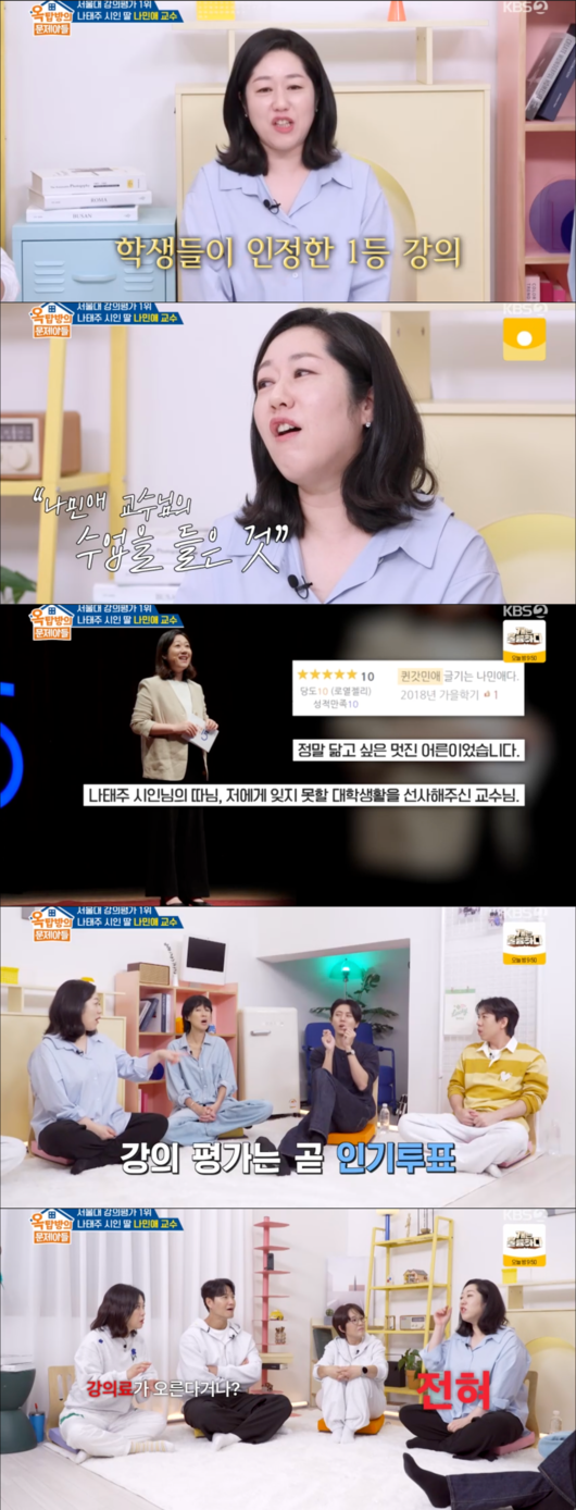 23일 전파를 탄 KBS 2TV 예능 ‘옥탑방의 문제아들’(이하 ‘옥문아’)에서는 서울대생들이 사랑하는 글쓰기 교수이자 나태주 시인의 딸, 나민애 교수가 옥탑방 손님으로 찾아왔다.