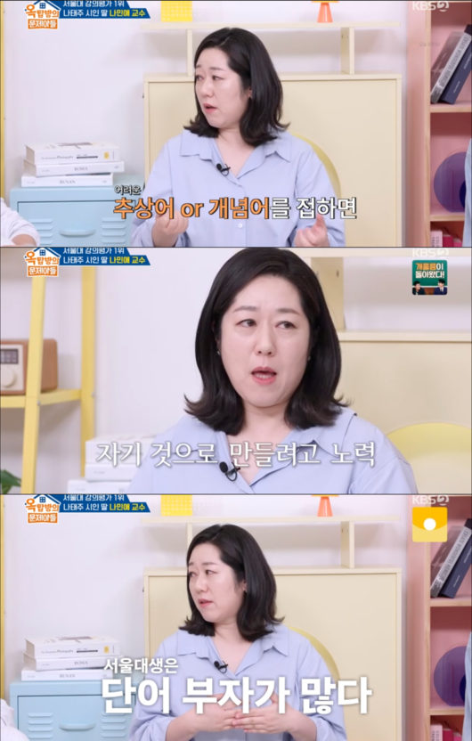 '옥탑방의 문제아들’ 나태주 시인의 딸이자 서울대학교에서 글쓰기 수업을 담당하고 있는 나민애 교수가 서울대 학생들이 가진 학업적 강점과 특징에 대해 설명했다.
