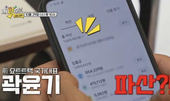 22일 방송된 TV조선 ‘내 멋대로-과몰입 클럽’ 예고편에는 곽윤기가 등장했다. 영상 속 그는 아침에 일어나자마자 휴대폰으로 통장을 확인했는데, 화면에 찍힌 잔액은 106만원뿐이었다. 제작진은 자막으로 “쇼트트랙 국가대표 곽윤기, 파산?”이라는 문구를 띄워 시청자들의 이목을 끌었다.