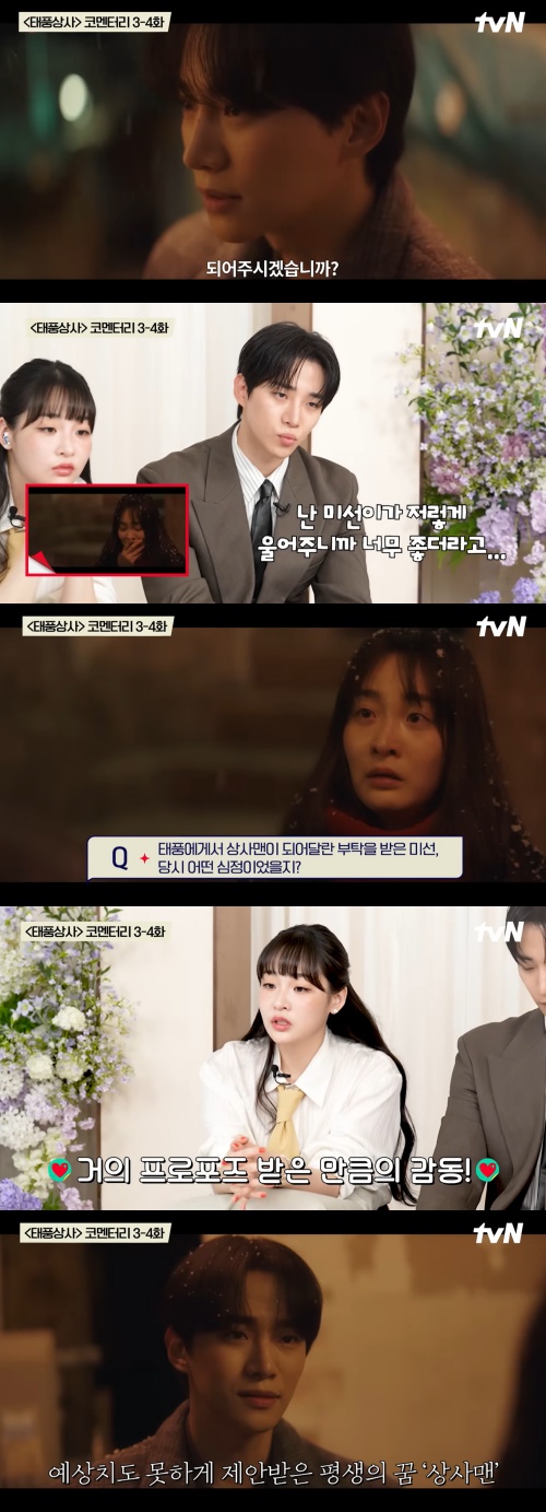 강태풍은 "오미선 씨 태풍상사의 상사맨이 되어주시겠습니까?"라고 했고, 감동한 오미선은 눈물을 흘렸다. 영상을 보던 이준호는 "미선이가 저렇게 울어주니까 너무 좋더라. 눈물난다 진짜"라고 했다.