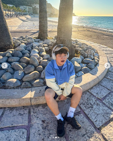 사진 속 곽튜브는 신혼 여행을 보내고 있는 근황을 전했다. 그는 아름다운 풍경을 배경으로 운동복을 입고 헤드셋과 모자를 착용한 채 운동하고 있는 모습을 담았다.