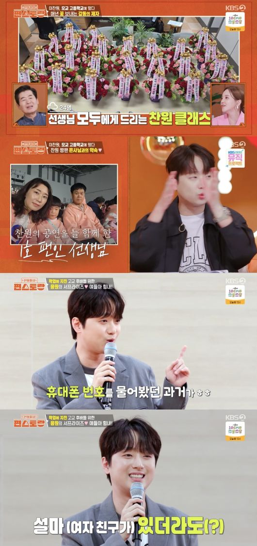 한편, 이찬원은 후배들과의 질의응답 시간을 가졌다. 한 학생은 “여자친구 사귀는 법 알려주세요”라고 물었다.