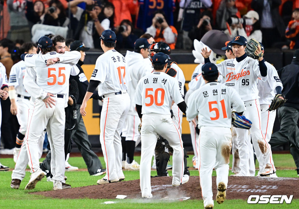 경기를 마치고 승리한 한화 선수들이 기뻐하고 있다. 2025.10.24 / dreamer@osen.co.kr