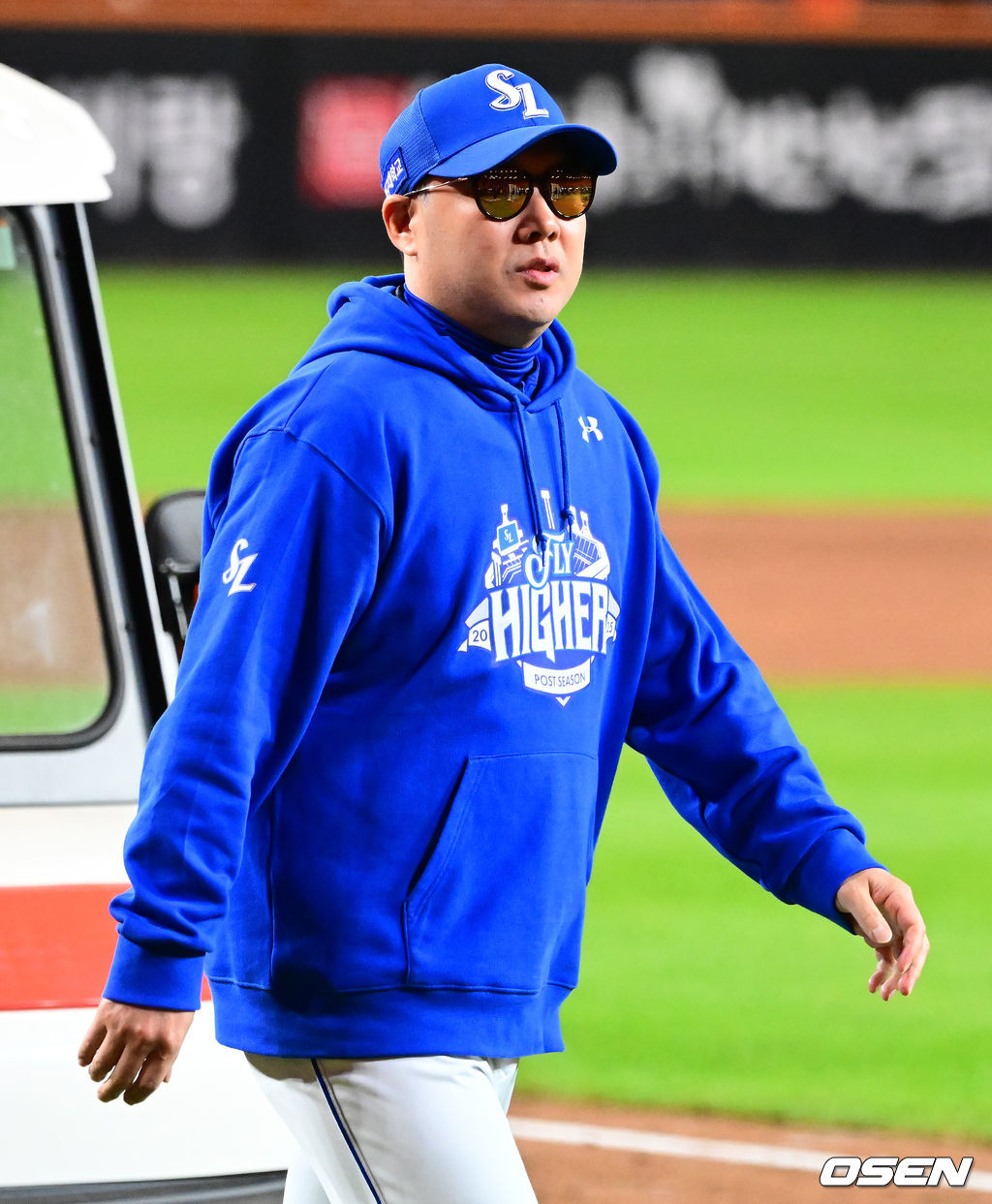 경기를 마치고 삼성 박진만 감독이 인터뷰를 위해 그라운드에 입장하고 있다. 2025.10.24 /jpnews@osen.co.kr