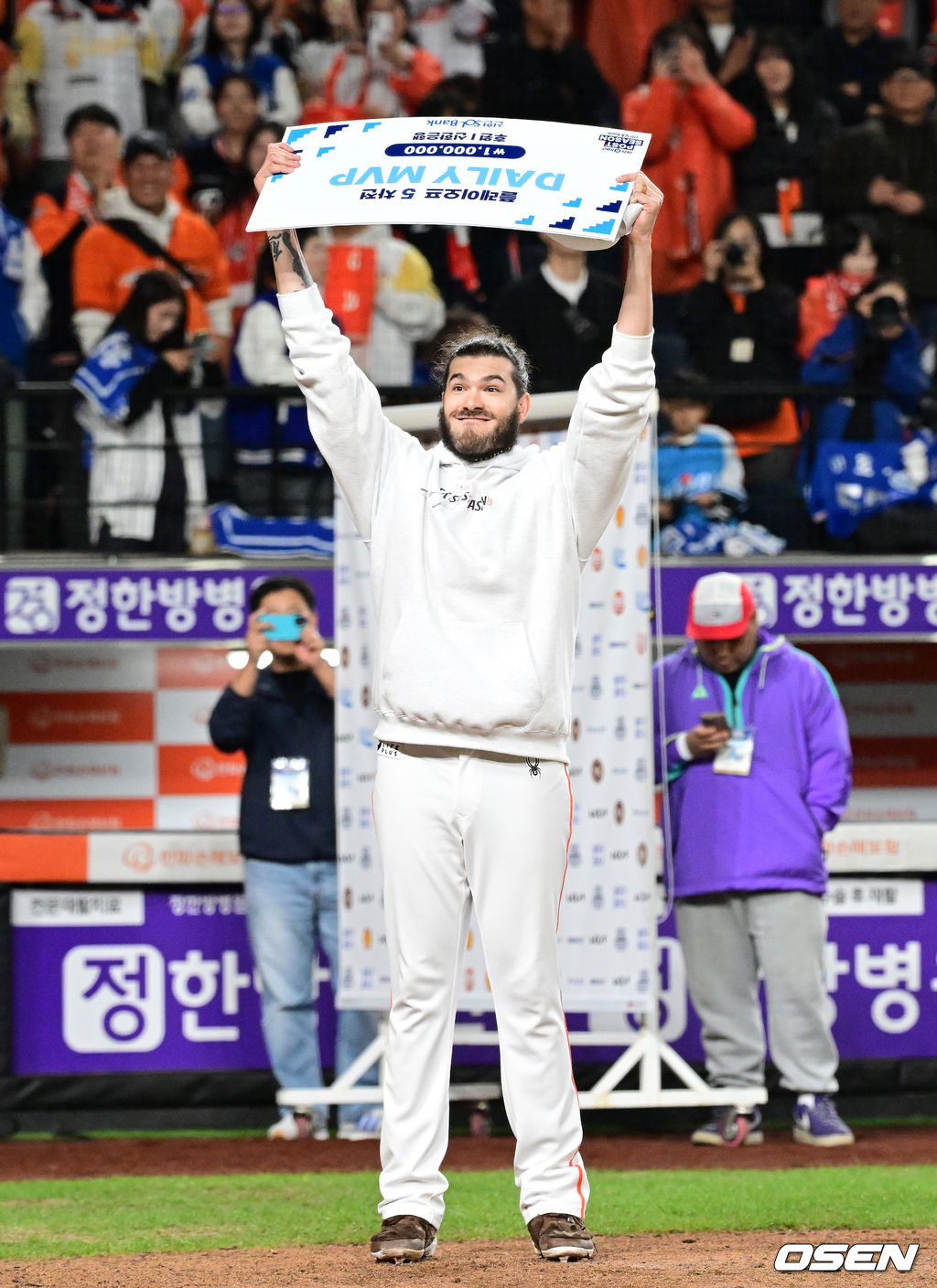 경기 종료 후 플레이오프 5차전 MVP를 수상한 한화 폰세가 포즈를 취하고 있다. 2025.10.24 /sunday@osen.co.kr