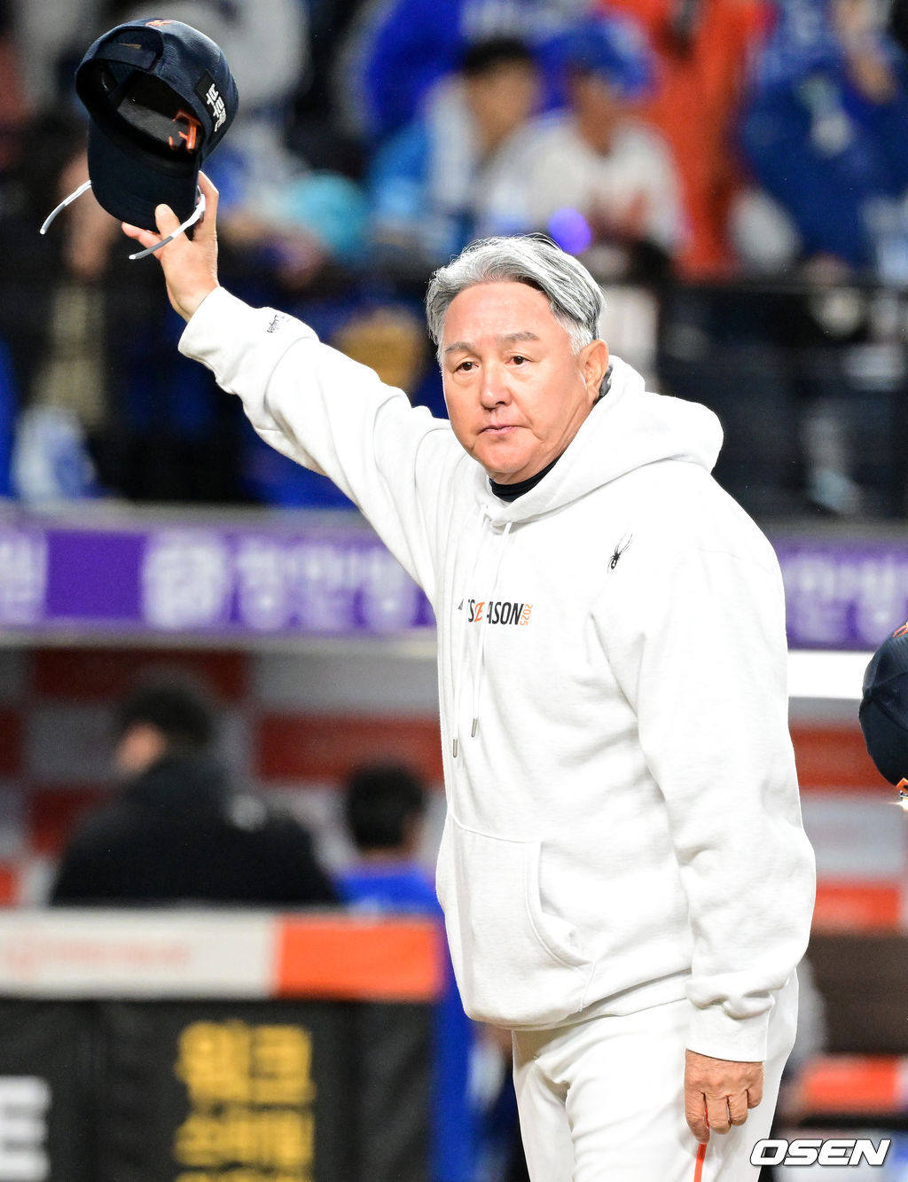경기 종료 후 한화 김경문 감독이 관중석을 향해 인사를 하고 있다. 2025.10.24 /sunday@osen.co.kr