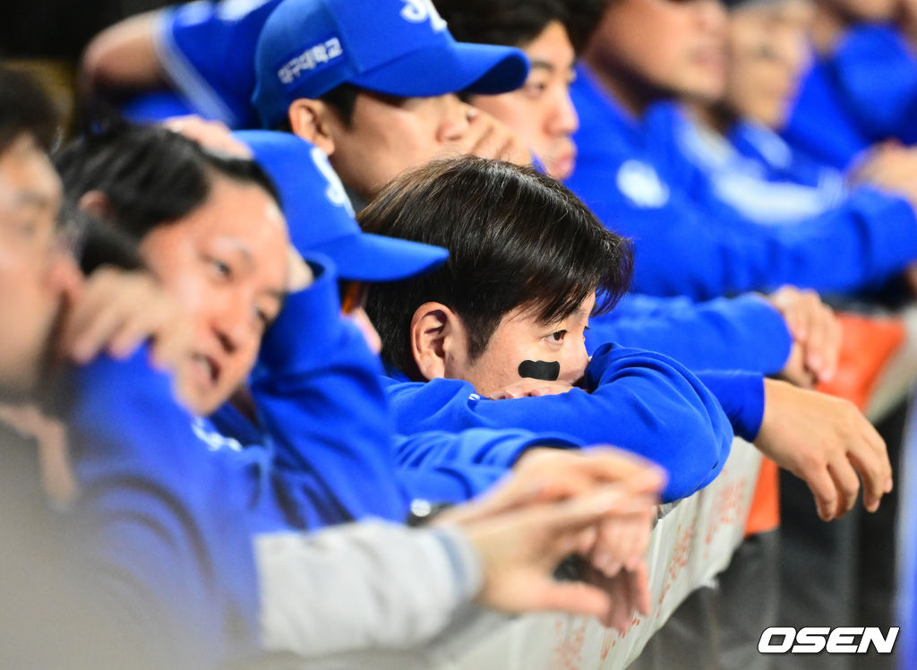 9회 삼성 강민호가 경기를 지켜보며 아쉬워하고 있다. 2025.10.24 /jpnews@osen.co.kr