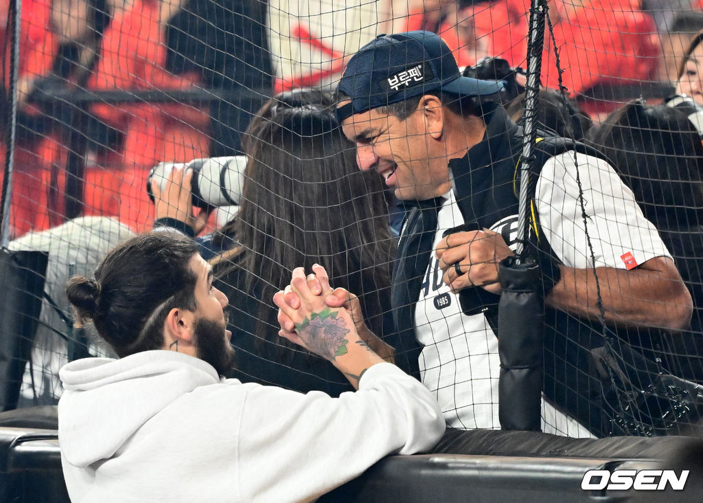 경기를 마치고 한화 폰세가 아버지와 승리를 기뻐하고 있다. 2025.10.24 /jpnews@osen.co.kr