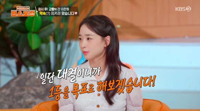 손연재는 “그래도 일단 대결이니까 1등을 목표로 해보겠다”라고 승부욕을 불태웠다. 아유미는 “역시 다르다”라고 했고, 이찬원은 “지금까지 점잖게 계시다가 이렇게 발톱을 드러내시냐”라고 놀랐다.