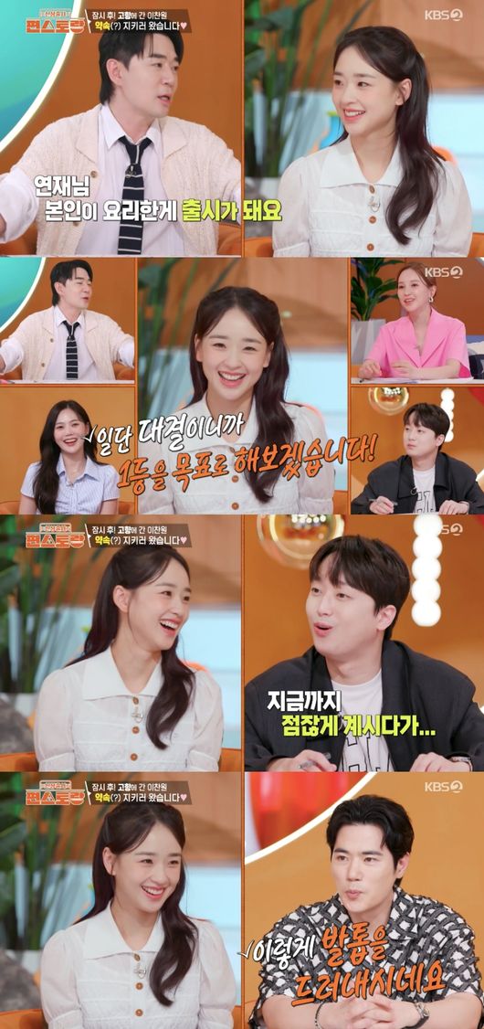 이날 ‘편스토랑’에는 이찬원, 김강우, 손연재가 고기를 주제로 한 메뉴 대결에 나선 바. 8호 메뉴 선정을 앞두고 붐은 신입셰프로 합류한 손연재에게 “연재 님 본인이 요리한 게 출시하면 기분이 너무 좋을 것 같은데 어떻습니까”라고 물었다.