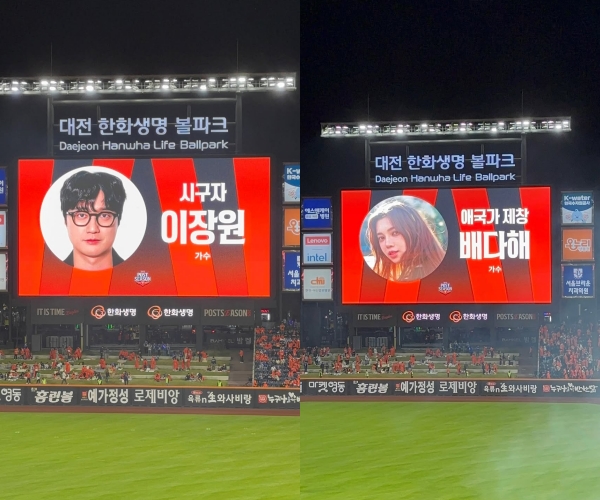 이날 대전에서 한화 이글스와 삼성 라이온즈의 플레이오프 5차전이 펼쳐진 가운데 배다해가 애국가 제창을 했고 오랜 한화 팬인 이장원이 시구를 했다.