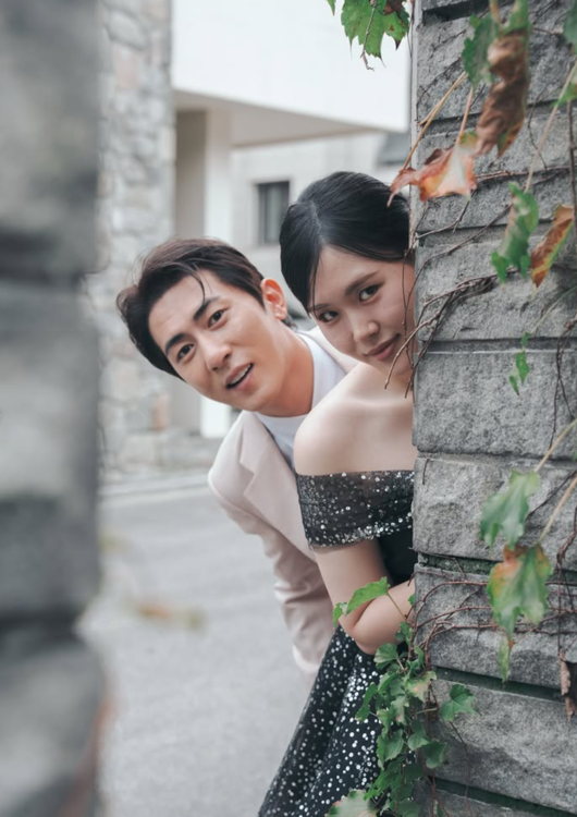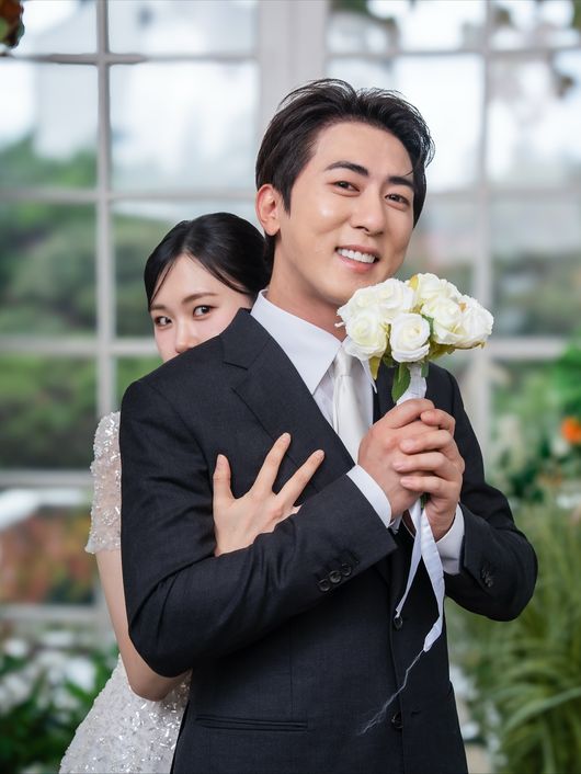 공개된 사진 속에는 김원훈이 동료 엄지윤과 웨딩 화보를 촬영한 모습이 담겨 있다. 김원훈은 멋진 블랙 턱시도를, 엄지윤은 순백의 웨딩드레스를 각각 차려 입고 카메라 앞에 섰으며, 백허그 등 과감한 스킨십까지 하면서 보통의 예비부부 같은 다정한 투샷을 드러냈다.