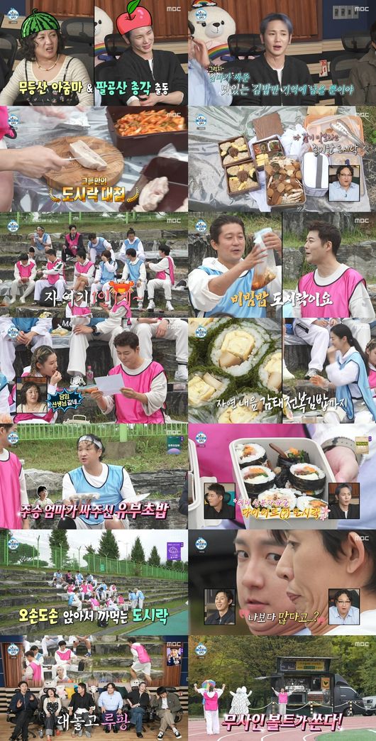 아침 일찍부터 대결을 펼치며 에너지를 쏟아낸 무지개 회원들은 각자 싸 온 도시락을 나눠 먹으며 에너지를 충전했다. 박나래는 엄마표 레시피로 만든 냉제육과 갑오징어초무침, 유부초밥에 도마까지 챙겨와 모두의 감탄을 자아냈다. 키는 무려 4시간 동안 만든 할머니표 레시피의 ‘게조림’을 무지개 회원들에게 1마리씩 나눠줬다. 키는 “10년 뒤에 운동한 건 기억 안 난다. 엄마가 싸준 맛있는 김밥만 기억날 뿐이다”라며 운동회의 도시락에 대한 생각을 밝혀 모두의 공감을 자아냈다.