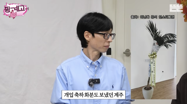 유재석은 “지금 난리더라고”라고 했고, 이효리는 “개업 화분 보내주셨다”라고 고마워했다. 유재석은 “그거 별 거 아니었다”라고 했고, 이효리도 “별 거 아니긴 했다”고 인정하며 웃었다.