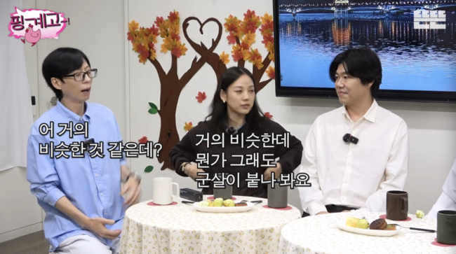 유재석은 “거의 비슷한 거 같은데?”라고 의아해했고, 이효리는 “거의 비슷한데 그래도 군살이 붙나봐요. 올리는 게 조금 힘들었다. 그래서 ‘나도 이게 안맞는 날이 오는구나’ 했다. 오빠는 거의 움직이지 않는다. 꽉 껴가지고”라고 전했다.