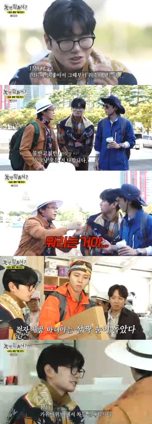 주우재는 자신의 닉네임을 ‘역삼동 3대 500’이라 소개했고, 하하는 ‘서리태’로 자신을 표현했다. 이이경은 “IMF”라며 짧게 인사했다. 오프닝 내내 유재석 옆에서 조용히 미소를 짓던 그는 “IMF 때 안 좋아서 위축됐는데 오늘 쇄신하고자 나왔다”고 소심하게 말했다.