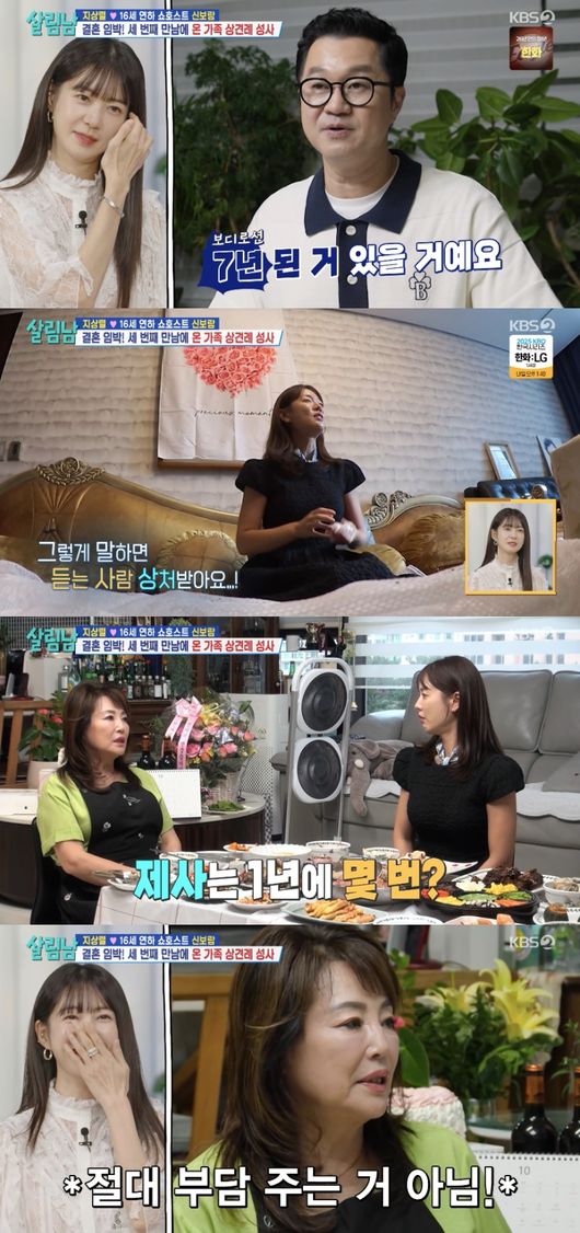 화기애애한 분위기 속 식사를 시작한 신보람과 지상렬 가족들. 이때 신보람은 달력을 구경하다 “1년에 제사가 몇 번 있냐”고 물었다. 형수님은 “걱정 안 해도 된다. 제가 다 한다. 1년에 제사가 22번”이라고 답했다. 부담을 주는 멘트에 지상렬 형은 “왜 제사 얘기까지 하면서 부담을 주냐”라고 제지했다.