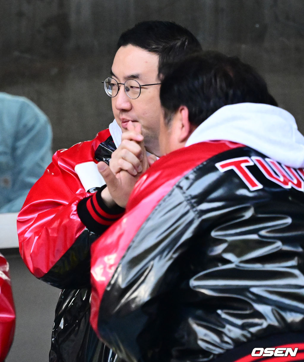LG 구광모 회장이 차명석 단장과 하이파이브를 하며 승리를 기뻐하고 있다. 2025.10.26 /jpnews@osen.co.kr