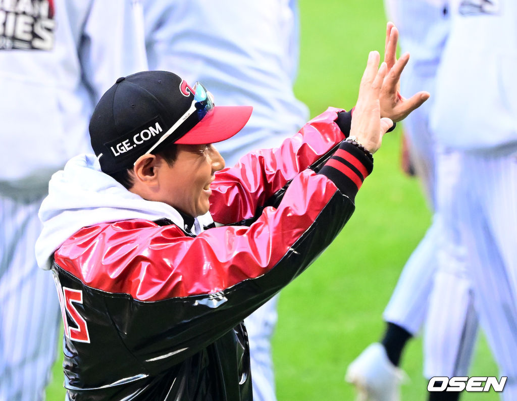 LG 염경엽 감독이 팬들에게 인사를 하고 있다. 2025.10.26 /jpnews@osen.co.kr