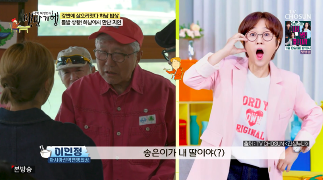 돌발 상황에 신봉선은 “이게 무슨 일이야”라고 당황했고, 허영만은 “형님 오랜만입니다”라고 인사했다. 알고보니 아시아산악연맹회장으로, 허영만의 지인이었던 것. 뜻밖의 만남에 통성명 타임을 가졌고, 허영만 지인은 신봉선을 향해 “송은이 내 딸이다”라고 밝혀 눈길을 끌었다.