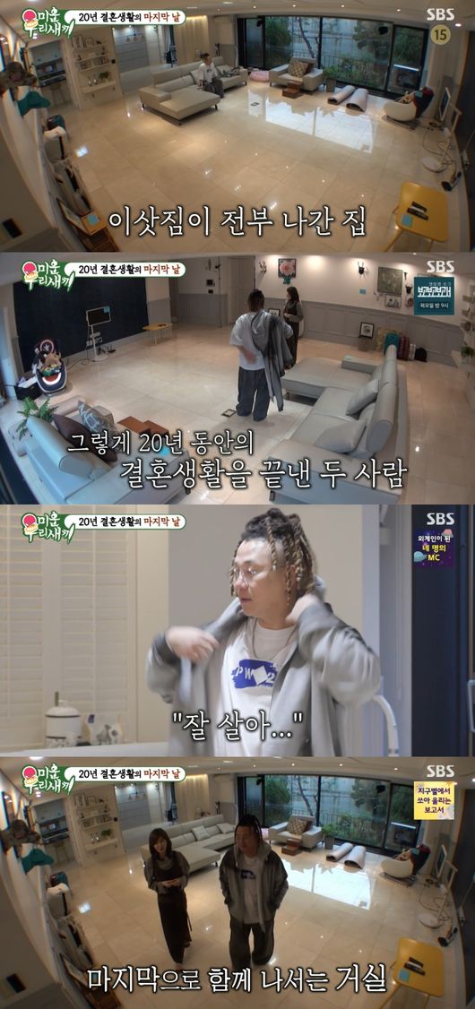 앞서 스티커로 각자의 짐을 나눈 윤민수는 이사를 마친 후 텅빈 집안을 둘러봤다. 20년 동안 함께한 집을 향해 그는 “잘 살다 갑니다”라면서도 “기분이 묘하다”라고 말했다. 영상을 본 어머니들은 속상함을 드러냈고, 윤민수 어머니 역시 고개를 돌렸다.