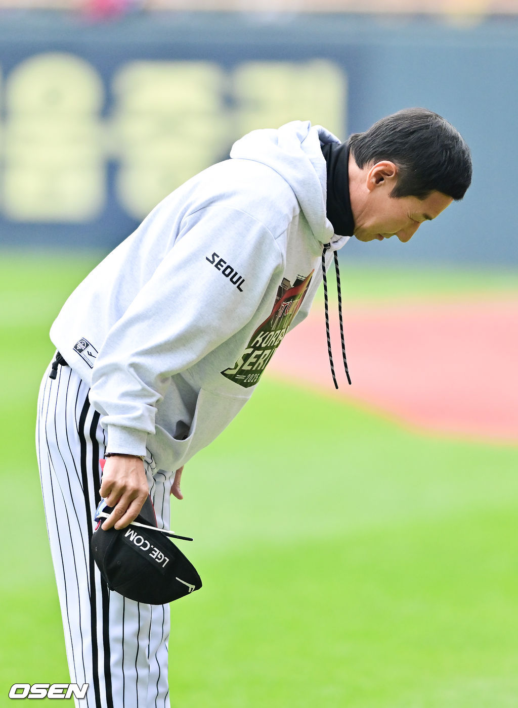 식전 행사에 LG 염경엽 감독이 입장하며 팬들에게 인사를 하고 있다. 2025.10.26 / soul1014@osen.co.kr