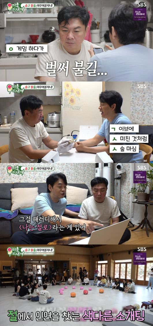 이후 김승수는 “만날 수 있는 환경이 별로 없다”라며 2030 세대 사이에서 화제가 된 템플스테이 소개팅 프로그램 ‘나는 절로’를 제안했다.