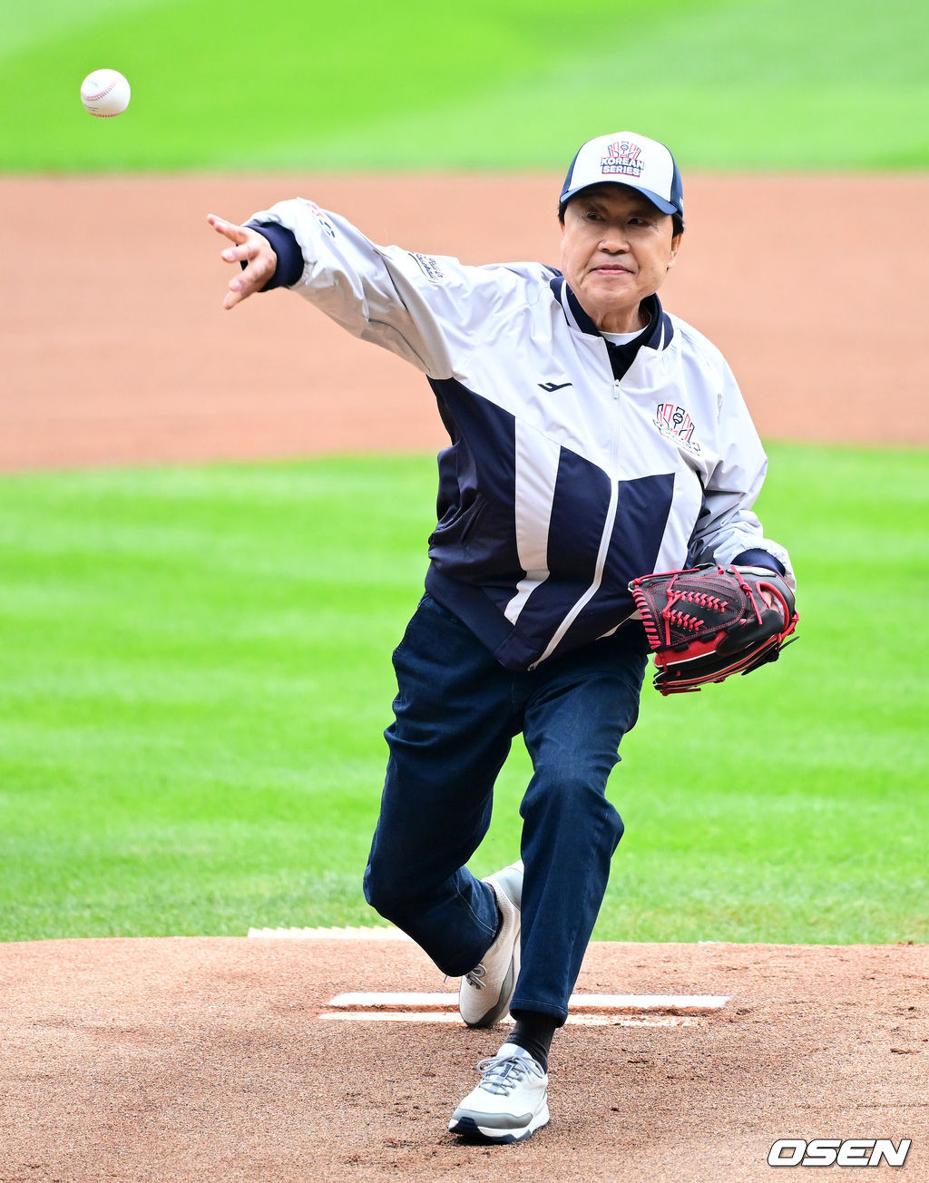 경기에 앞서 김재박 전 감독이 시구를 하고 있다. 2025.10.26 /jpnews@osen.co.kr