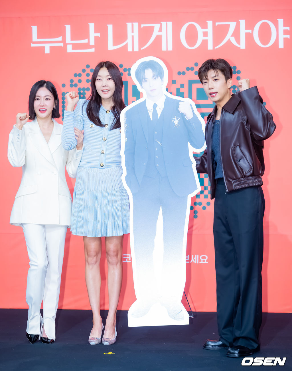 배우 황우슬혜, 한혜진, 우영(2PM)이 입장하며 포즈를 취하고 있다. 2025.10.27 / rumi@osen.co.kr