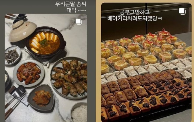 공개된 사진 속에는 김치찌개, 삼겹살롤, 소시지 야채볶음 등 정성스러운 한 상이 담겼다. 제과점 수준의 베이킹 실력까지 자랑한 딸의 모습에 신애라는 “공부 그만하고 베이커리 차려도 되겠다”며 감탄을 아끼지 않았다.