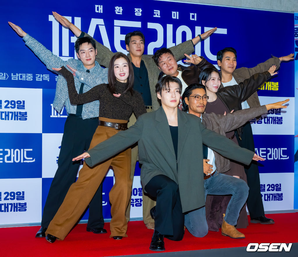 배우 강하늘 김영광 강영석 한선화를 비롯한 퍼스트 라이드 출연 배우들이 포토타임을 갖고 있다. 2025.10.27 /rumi@osen.co.kr