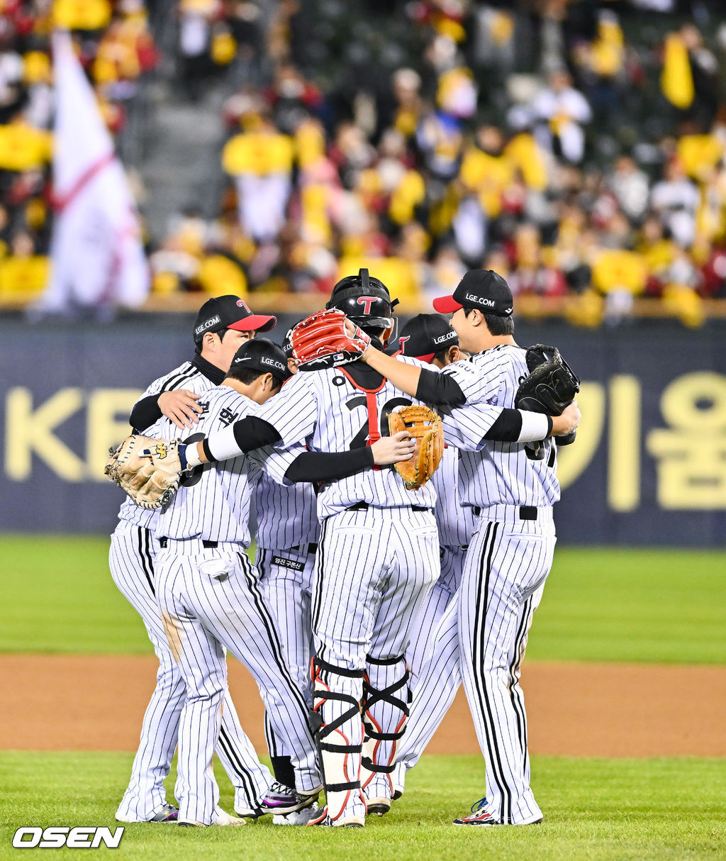 경기종료 후 LG 선수들이 승리의 기쁨을 나누고 있다. 2025.10.27 / soul1014@osen.co.kr