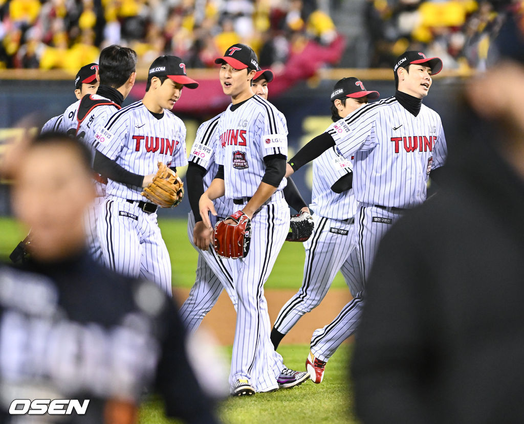 경기종료 후 LG 선수들이 승리의 기쁨을 나누고 있다. 2025.10.27 / soul1014@osen.co.kr