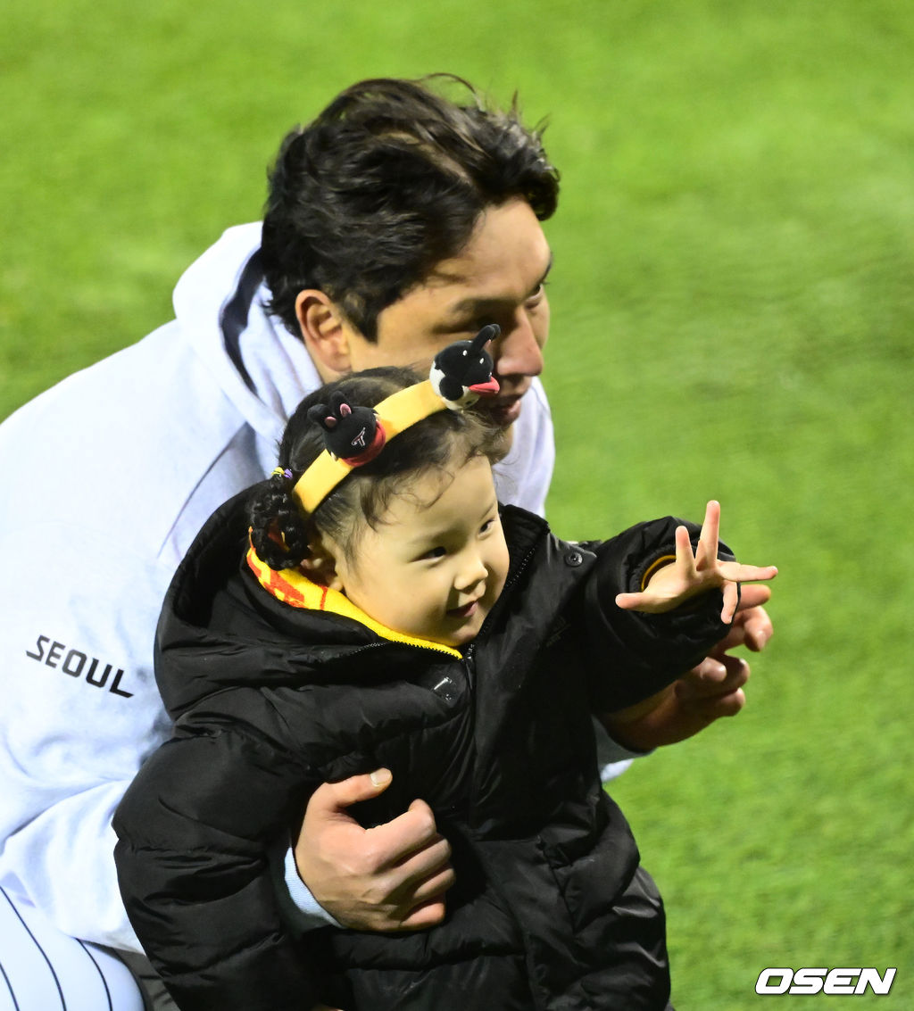 LG 박동원이 딸과 함께 승리를 기뻐하고 있다. 2025.10.27 /jpnews@osen.co.kr
