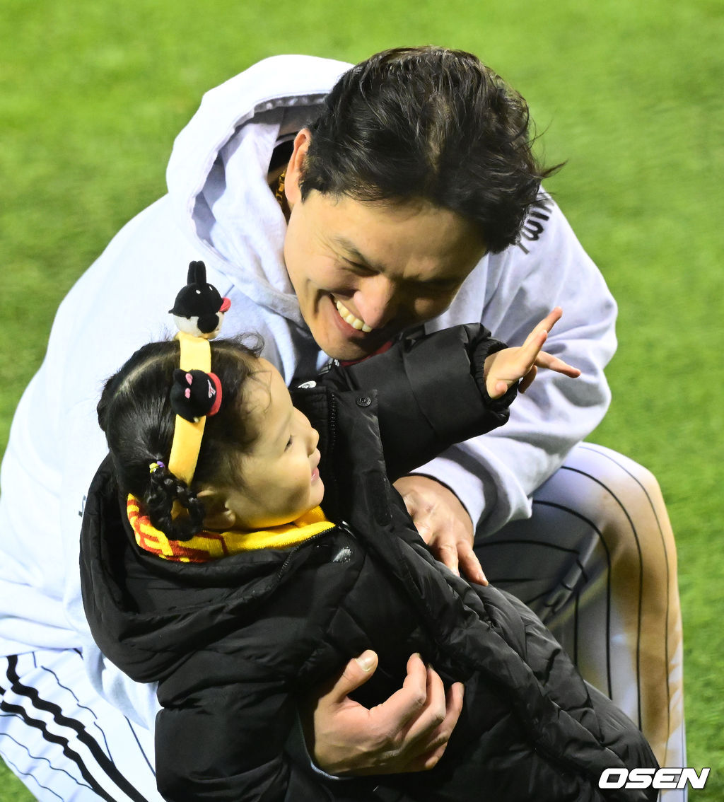 LG 박동원이 딸과 함께 승리를 기뻐하고 있다. 2025.10.27 /jpnews@osen.co.kr