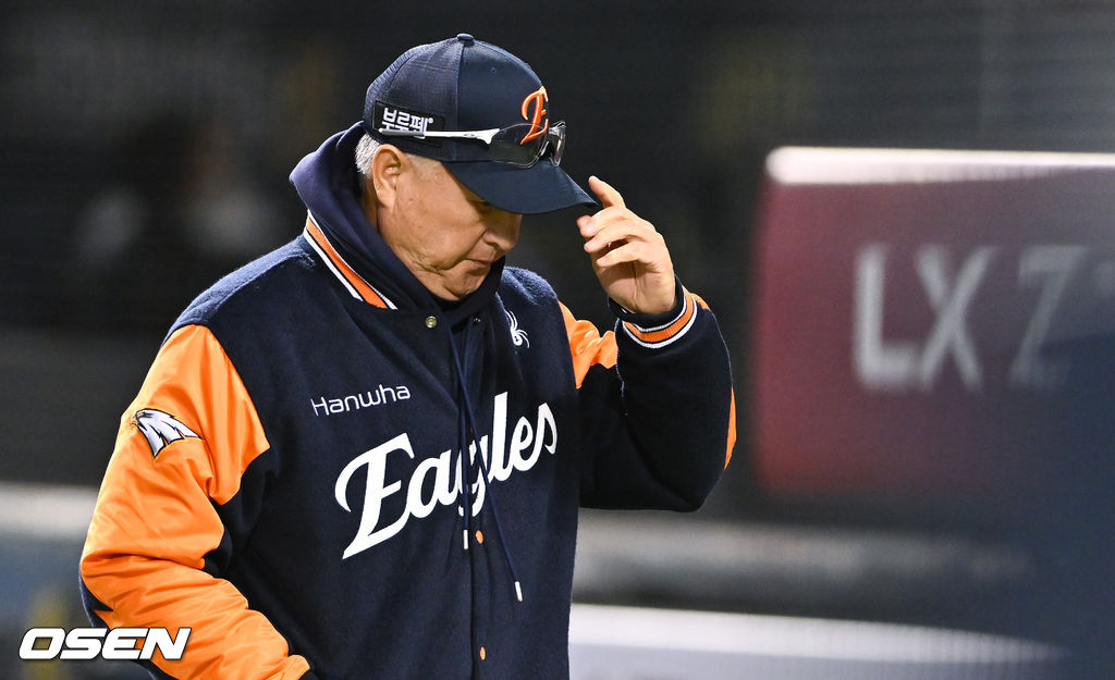 경기종료 후 한화 김경문 감독이 인터뷰 마치고 퇴장하고 있다. 2025.10.27 / soul1014@osen.co.kr