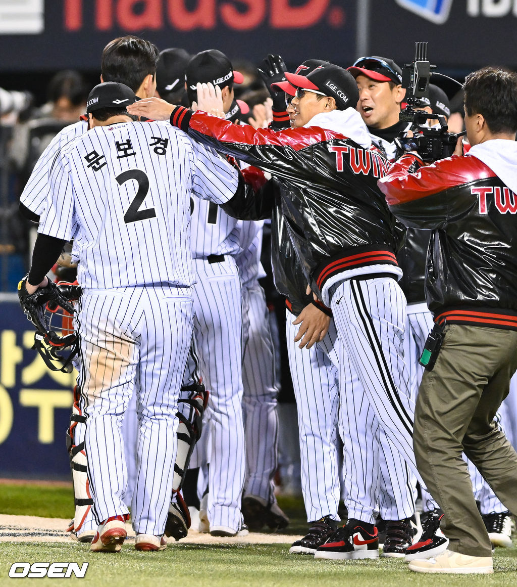 경기종료 후 LG 염경엽 감독이 MVP 문보경을 다독이고 있다 2025.10.27 / soul1014@osen.co.kr