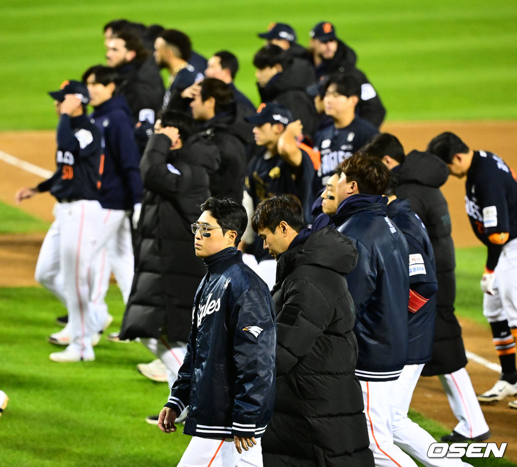 경기를 마치고 한화 선수들이 패배를 아쉬워하고 있다. 2025.10.27 /jpnews@osen.co.kr
