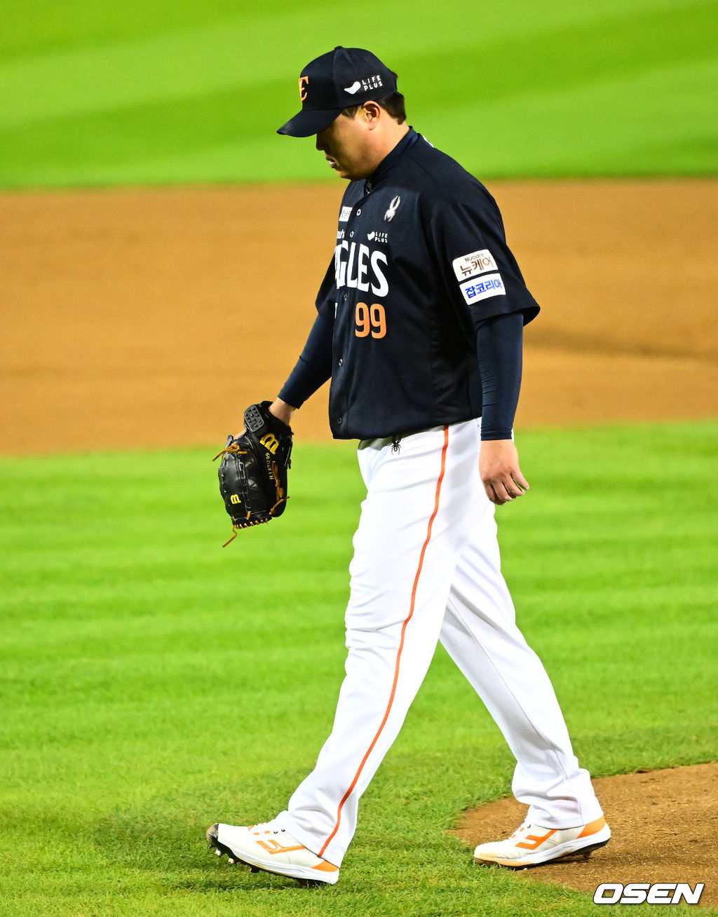 2회말 수비에서 5실점 역전을 허용한 한화 류현진이 아쉬워하고 있다. 2025.10.27 /jpnews@osen.co.kr