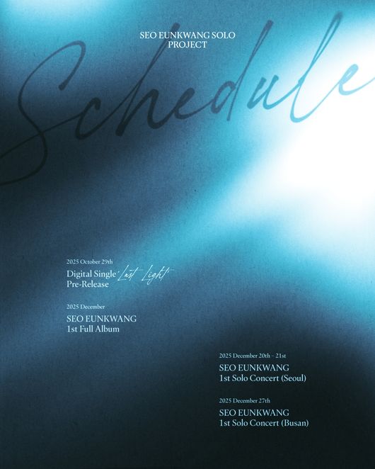 스케줄러에 따르면 서은광은 오는 12월 솔로 첫 정규 앨범을 발매하고 대한민국 대표 보컬리스트의 화려한 귀환을 알린다. 10월 29일 선공개곡 '라스트 라이트(Last Light)'를 발매하고 팬들의 기대감을 상승시킬 예정이다.