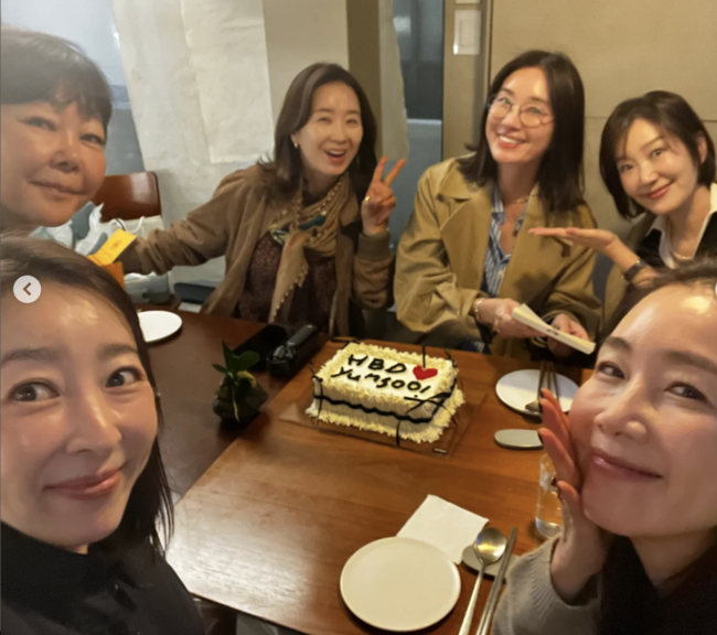 공개된 사진 속에는 배우 윤유선, 최지우, 유호정과 이경민 등이 함께한 오연수의 생일 파티 현장이 담겨 있다. 단정한 의상과 편안한 미소로 카메라를 향해 포즈를 취한 이들은 오랜 절친다운 다정한 분위기를 자아냈다.