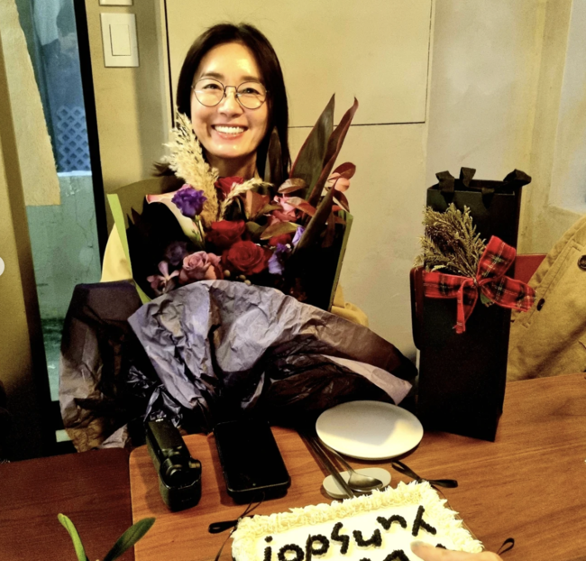 테이블 위에는 ‘HBD Yunsu!’라고 적힌 케이크가 놓여 있었고, 자연스럽게 우아한 매력을 발산하는 오연수는 꽃다발을 안고 환하게 미소를 지으며 행복한 생일의 주인공이 됐다.