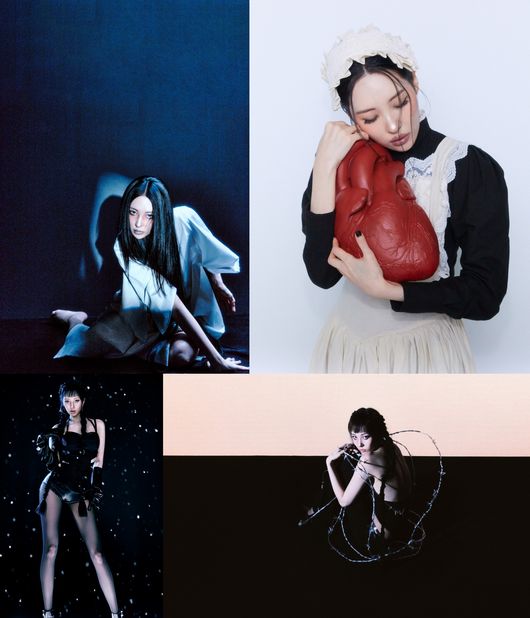 이어 앨범 ‘HEART MAID’의 콘셉트 포토에서는 단정한 복장을 입고 심장 모형을 끌어안거나, 이와 반대로 유니크한 오브제들을 활용한 컷에서는 다채로운 감정들을 섬세하게 표현했다.