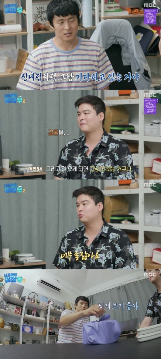 이장우는 기안84에게 결혼식 로망을 물었고, 기안84는 “하게 되면 신내림처럼 그냥 기다리고 있는 것이다. 언젠가 오지 않을까. 안 오면 마는 것이고. 그렇게 생각하는 게 마음 편하다. 하게 되면 로망은, 그분을 따라하려는 건 아니고 원빈 님처럼 야외에서 조용하게 (하고 싶다)”라고 조심스럽게 말했다.