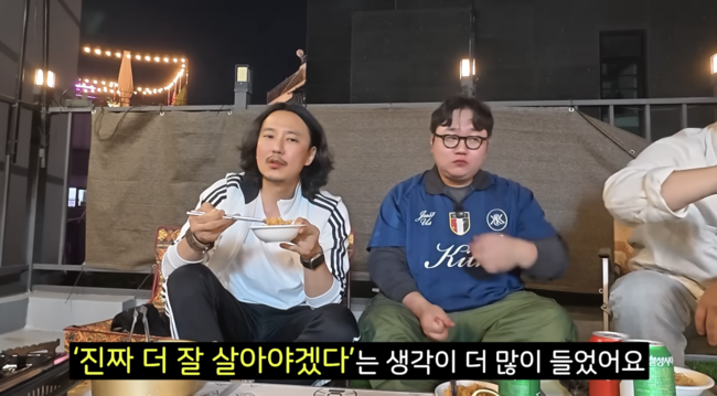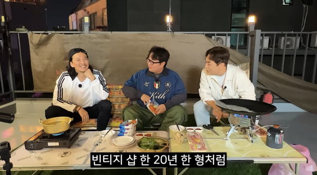 이날 세 사람은 옥상에서 삼겹살과 비빔면을 먹으며 소탈한 한 끼를 즐겼다. 황제성이 “오늘 메뉴는 비빔면과 삼겹살이다. 제대로 끓여야겠다”고 말하자, 김남길은 “이 기름에 라면 끓여먹으면 되지”라고 능청스럽게 제안했다. 이에 황제성이 “형, 곧 작품 들어간다며. 제작사 대표님이 형 너무 많이 먹는다고 하더라”고 타박하자, 김남길은 “난 먹는 게 너무 좋아”라며 웃음을 터뜨렸다.